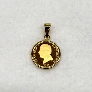 金貨:純金 1/30オンス 約1.03g、ロイヤルミント(イギリス王立造幣局)製造、イギリス連邦王国加盟クック・アイランズ政府発行 金貨直径:約12mm ペンダント枠:K18約0.2g ペンダント大きさ:約18×12mm(バチカン含む) ギャランティカード(品質保証書) オフシャルライセンス証明カード ケース |