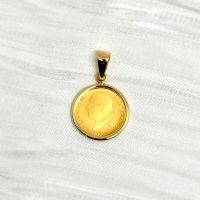 金貨:純金1/30オンス 約1.03g、ロイヤルミント(英国王立造幣局)製造 金貨直径:約12mm ペンダント枠:K18約0.2g ペンダント大きさ:約18×12mm(バチカン含む) ギャランティカード ケース |